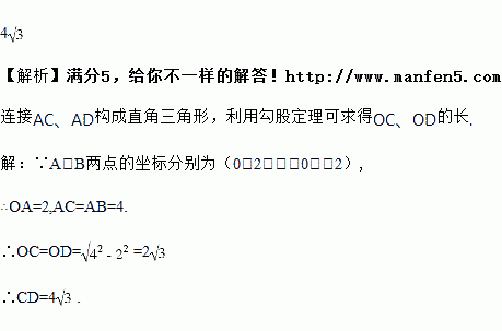 如图,在平面直角坐标系中,A、B两点的坐标分别为(0,2)、(0,﹣2),以点A为圆心,AB为半径作圆,⊙A与x轴相交于C、D两点,则CD的长度是_____.