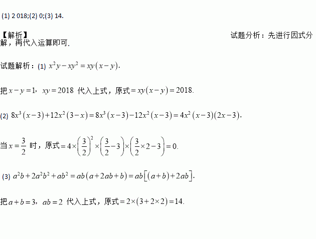 (1)x2y-xy2,其中x-y=1,xy=2 018;