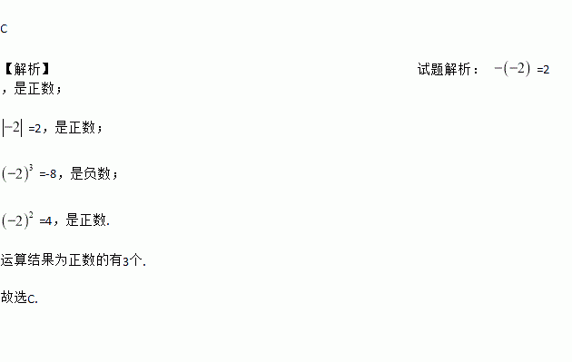 C 【解析】试题解析: =2,是正数; =2,是正数; =-8,是负数; =4,是正数. 运算结果为正数的有3个. 故选C.