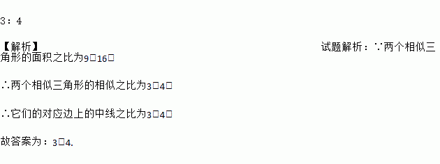 两个相似三角形的面积比是9:16,则它们的对应边上的中线的比是_____.