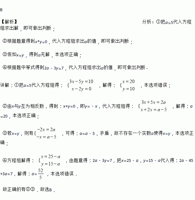 ②当x,y的值互为相反数时,a=20;