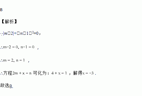已知|m-2|+(n-1)2=0,则关于x的方程2m+x=n的解是( )