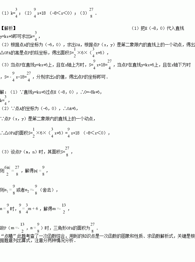 如图,直线y=kx+6与x轴y轴分别交于点E,F.点E的坐标为(-8,0),点A的坐标为(-6,0).