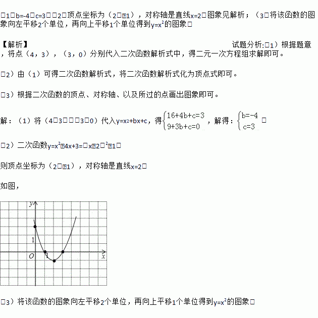 已知二次函数y=x2+bx+c的图象经过点(4,3),(3,0).
