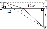 (2)由(1)的结果可作BD=12,过点A作AF∥BD,交DE的延长线于F点,使AB=2,ED=3,连接AE交BD于点C,然后构造矩形AFDB,Rt△AFE,利用矩形的直角三角形的性质可求得AE的值就是代数式