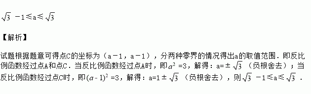 在平面直角坐标系的第一象限内,边长为1的正方形ABCD的边均平行于坐标轴,A点的坐标为(,).如图,若曲线与此正方形的边有交点,则的取值范围是 .