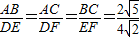 【答案】分析:(1)首先根据小正方形的边长,求出△ABC和△DEF的三边长,然后判断它们是否对应成比例即可.