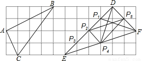 (2)P1,P2,P3,P4,P5,D,F是△DEF边上的7个格点,请在这7个格点中选取3个点作为三角形的顶点,使构成的三角形与△ABC相似(要求写出2个符合条件的三角形,并在图中连接相应线段,不必说明理由)