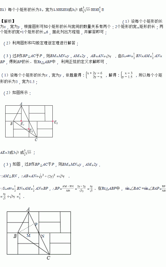 如图,由12个形状、大小完全相同的小矩形组成一个大的矩形网格,小矩形的顶点称为这个矩形网格的格点,已知这个大矩形网格的宽为6,△ABC的顶点都在格点.