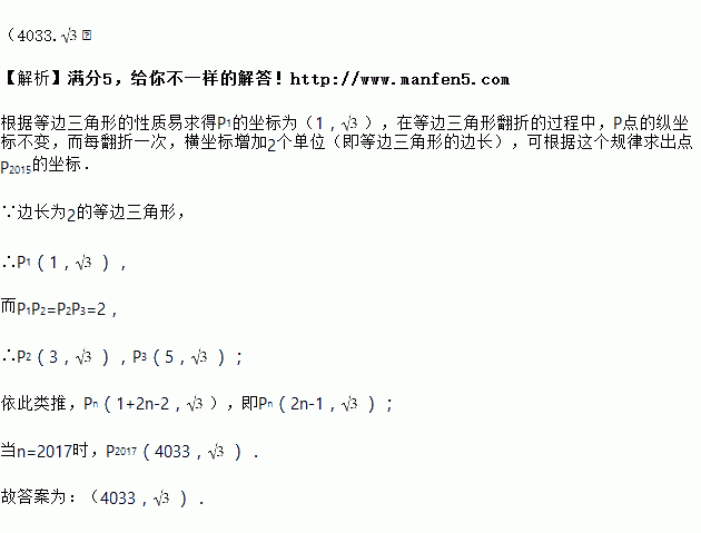 如图所示,将边长为2的等边三角形沿轴正方向连续翻折2017次,依次得到点,,,…,,则点的坐标是______.