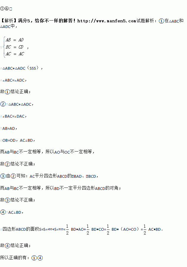 如图,在四边形ABCD中,AB=AD,CB=CD,对角线AC,BD相交于点O,下列结论中: