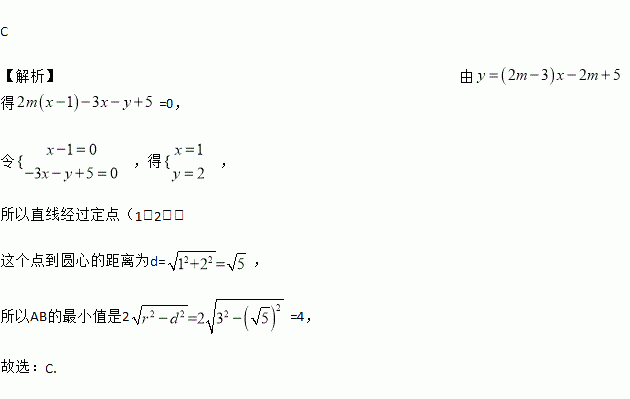 平面直角坐标系中,直线与以坐标原点为圆心的⊙O交于两点,⊙O的半径为3,则最小值为 ( )