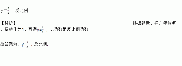 将方程2xy-4=0改写成y与x的函数关系是______,它是_____函数.