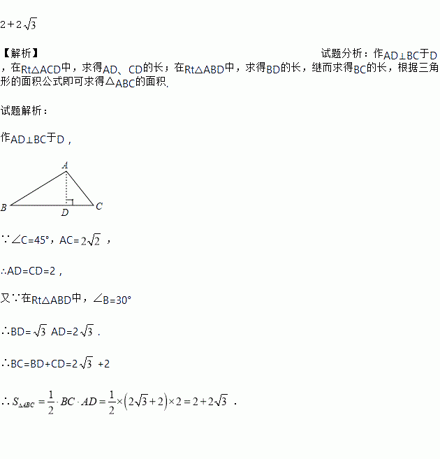 已知:如图,在△ABC中,∠B=30°,∠C=45°,AC=2,求S△ABC.