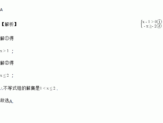 A. 1<x≤2 B. x≥2 C. x<1 D. 无