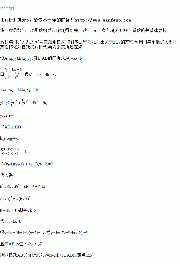 已知抛物线y=x2,以D(﹣2,1)为直角顶点作该抛物线的内接Rt△ADB(即A.D.B均在抛物线上).直线AB必经过一定点,则该定点坐标为_____.