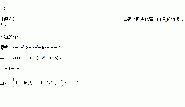 时,求多项武3一2 x2+3x+3 x2一5x一x2-7的值.