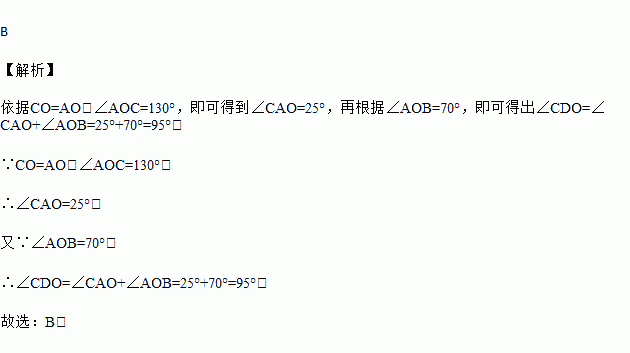 在△AOC中,OB交AC于点D,量角器的摆放如图所示,则∠CDO的度数为( )
