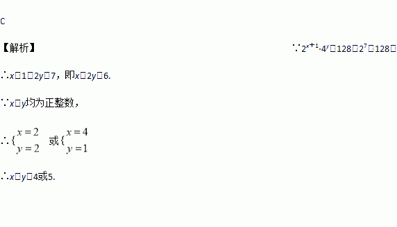 若x,y均为正整数,且2x+1·4y=128,则x+y的值为( )
