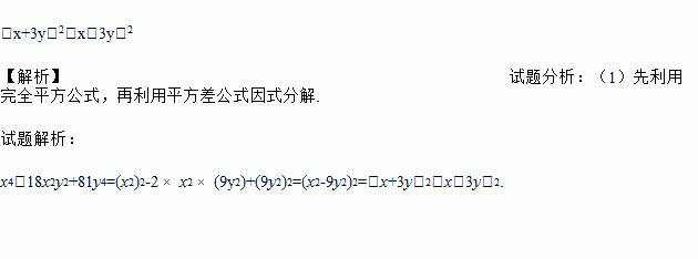 x4﹣18x2y2+81y4.