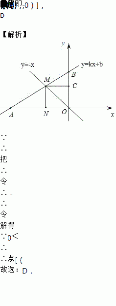 已知点M(n,﹣n )在第二象限,过点M的直线y=kx+b(0<k<1)分别交x轴、y轴于点A,B,过点M作MN⊥x轴于点N,则下列点在线段AN的是( )