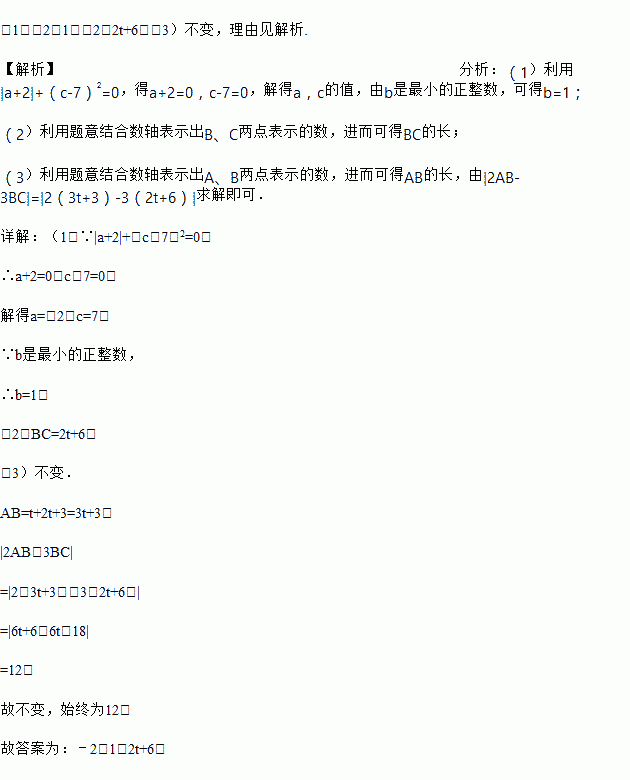 如图,在数轴上点A表示数a,点B表示数b,点C表示数c.b是最小的正整数,且a、b满足|a+2|+(c﹣7)2=0