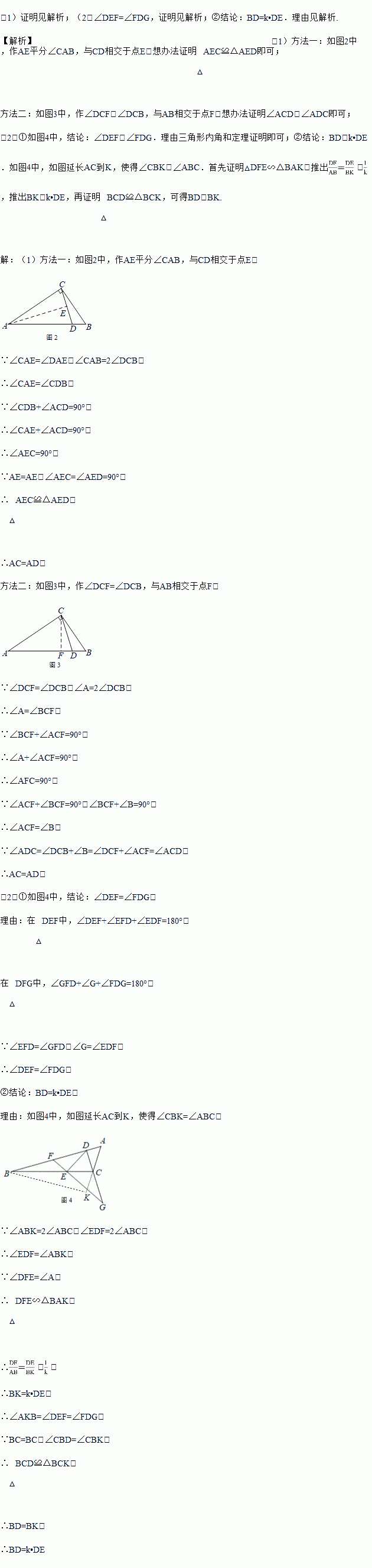 Èçͼ1£¬¡÷ABCÖУ¬¡ÏACB=90¡ã£¬µãDÔÚABÉÏ£¬ÇÒ¡ÏBAC=2¡ÏDCB£¬ÇóÖ¤£ºAC=AD£®