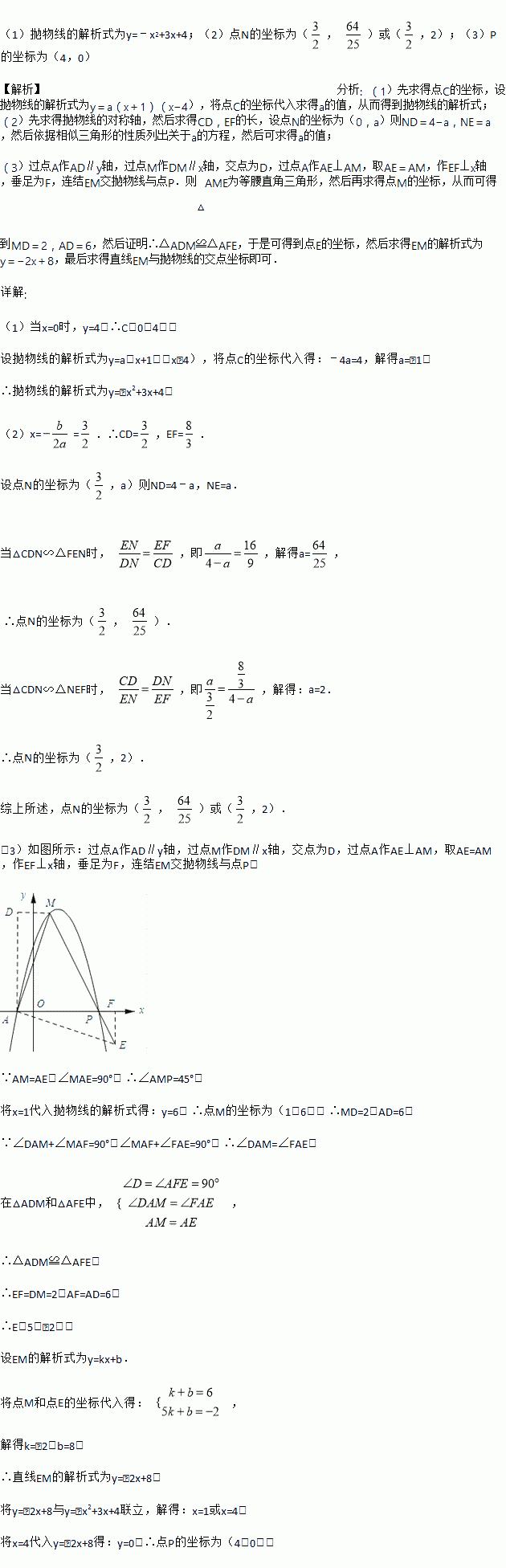 二次函数y=ax2+bx+4的图象与x轴交于两点A、B,与y轴交于点C,且A(﹣1,0)、B(4,0).