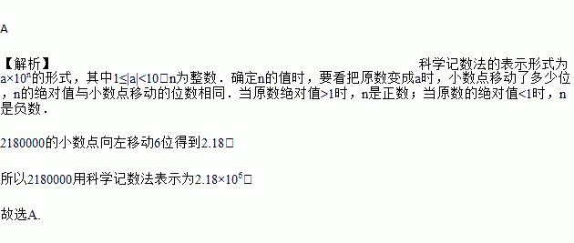 一条数学信息在一周内被转发了2180000次,将数据2180000用科学记数法表示为( )