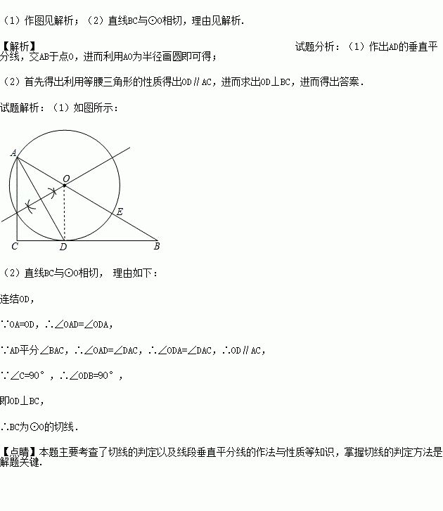 (1)作一个⊙O使它经过A、D两点,且圆心O在AB边上;(不写作法,保留作图痕迹).