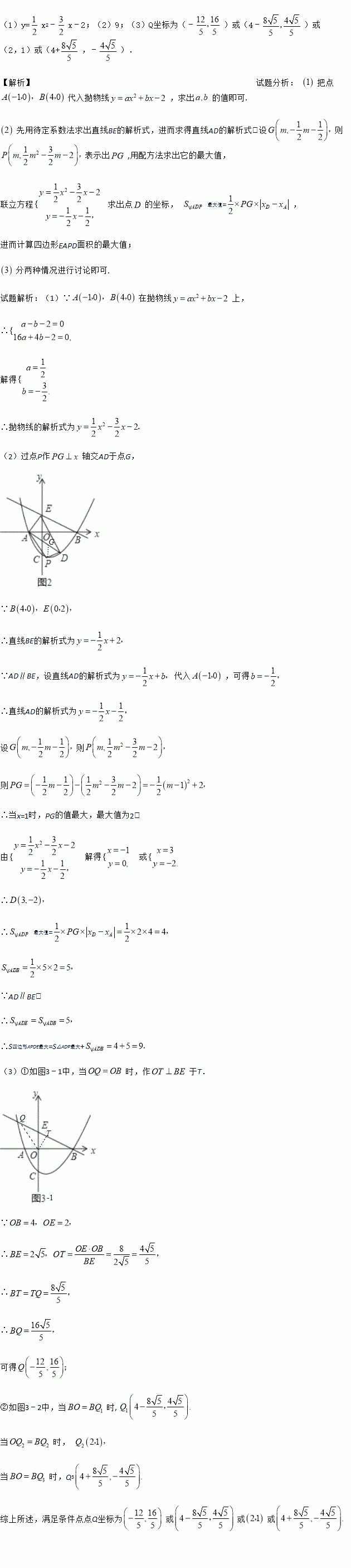 (3)如图3,连结AC,将△AOC绕点O逆时针方向旋转,记旋转中的三角形为△A′OC′,在旋转过程中,直线OC′与直线BE交于点Q,若△BOQ为等腰三角形,请直接写出点Q的坐标.