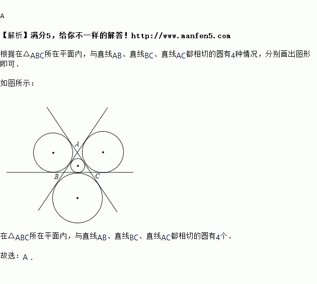 在所在平面内,与直线、直线、直线都相切的圆有( )个
