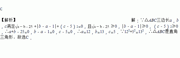 若△ABC三边长a,b,c满足 +| |+( )2=0,则△ABC是( )