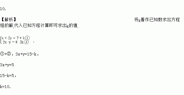 如果关于x,y的方程组的解满足3x+y=5,求k的值.