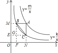 分析:先设出点A的坐标,求出点B、C的坐标,继而表示出各图形的面积,然后根据2S△ABC=S矩形AMON-(S矩形MBFO+S矩形OECN-S矩形OFGE)得出S△ABC的表达式,从而可作出判断.