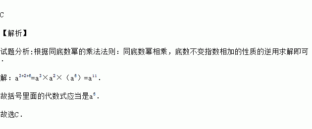 在等式a3×a2×( )=a11中,括号里填入的代数式应当是( )