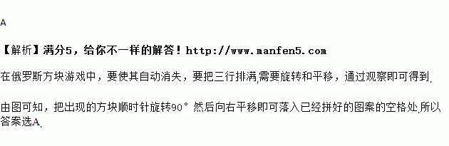 如图,在新型俄罗斯方块游戏中(出现的图案可进行顺时针、逆时针旋转;向左、向右平移),已拼好的图案如图所示,现又出现一个形如的方块正向下运动,你必须进行以下哪项操作,才能拼成一个完整的图形( )