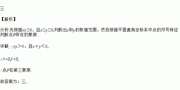若P(x,y)的坐标满足xy>0,且x+y<0,则点P在第_____象限.