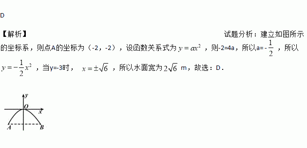 如图,有一抛物线拱桥,当水位线在AB位置时,拱桥顶离水面2m,水面宽4m,水面下降1m后,水面宽为( )