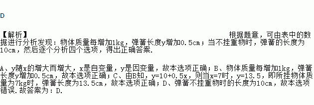 在弹性限度内,弹簧挂上物体后会伸长,测得弹簧的长度与所挂物体的质量![]()