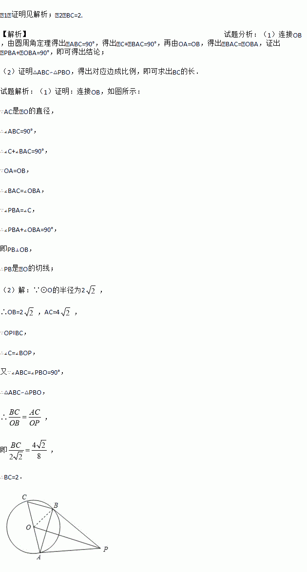 £¨2£©Á¬½ÓOP£¬ÈôOP¡ÎBC£¬ÇÒOP=8£¬¡ÑOµÄ°ë¾¶Îª2