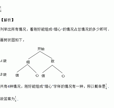 有A、B两个不透明的口袋,每个口袋里装有两个相同的球,A袋中的两个球上分别写了“细”“致”的字样,B带出那两个球上分别写了“信”“心”的字样,若从每个口袋里各摸出一个球,在刚好能组成“细心”这样的概率是______.