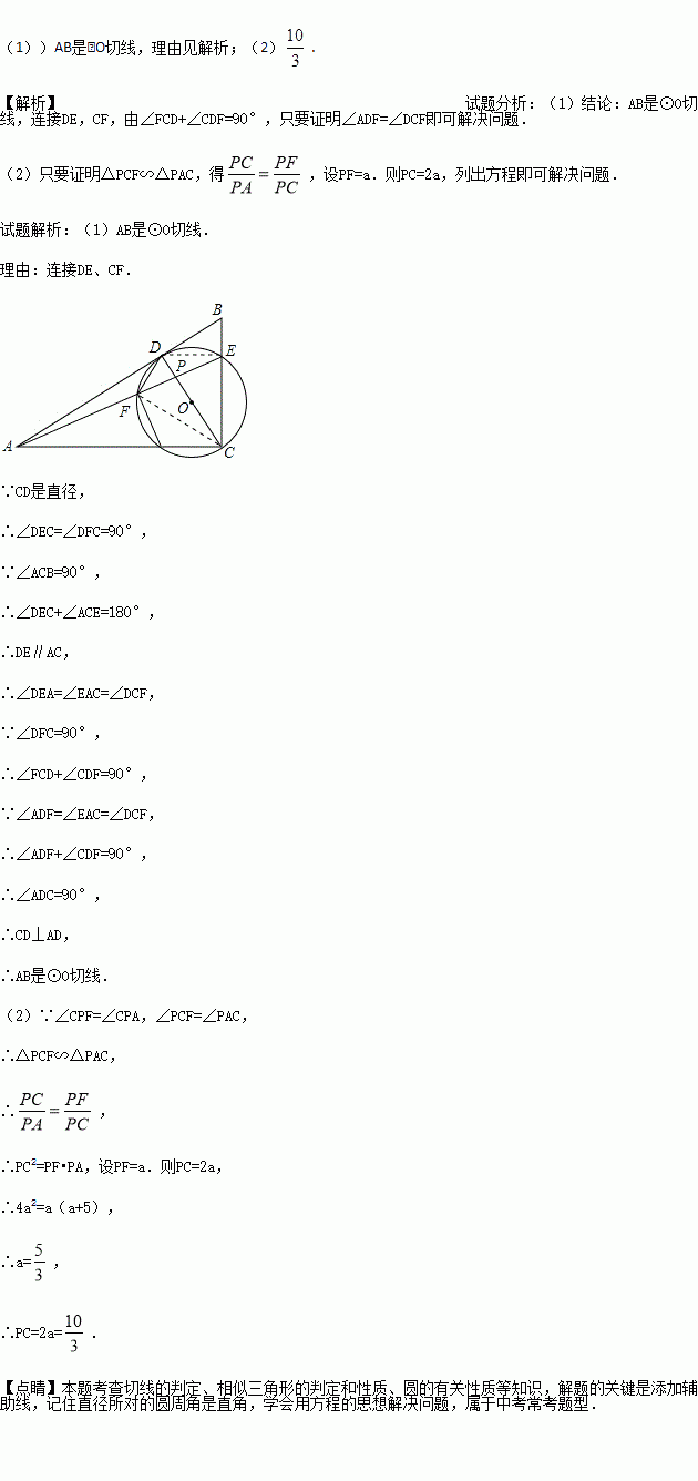 (2)若PF:PC=1:2,AF=5,求CP的长.