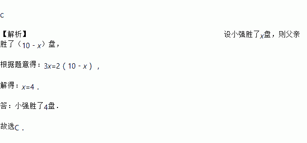 (3分)父亲与小强下棋(设没有平局),父亲胜一盘记2分,小强胜一盘记3分,下了10盘后,两人得分相等,则小强胜的盘数是( )