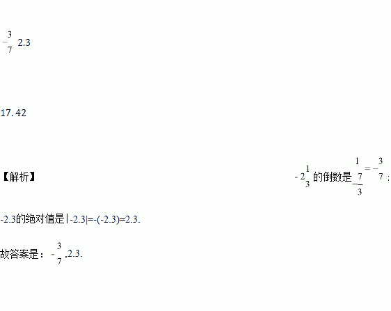 的倒数是 _______,-2.3的绝对值是 _______.