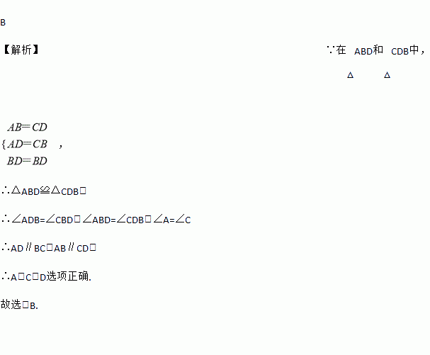 如图,AB=CD,AD=CB,那么下列结论中错误的是( )