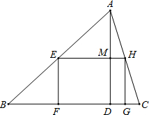 已知:如图:AD⊥BC于D,点E是边AB上一动点,四边形EFGH是矩形,其中点F,G在BC上,点H在AC上.