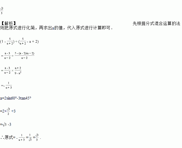 先化简,再求值:,其中a=2sin60°-3tan45°