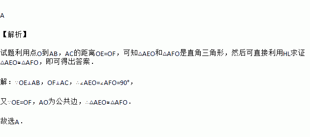 如图,O是∠BAC内一点,且点O到AB,AC的距离OE=OF,则△AEO≌△AFO的依据是( )