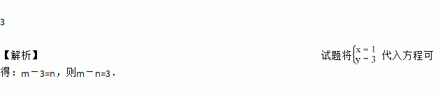 已知是方程mx-y=n的一个解,则m-n的值为 .